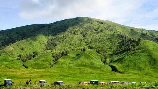 Sisi selatan Bromo menawarkan pemandangan bukit-bukit hijau yang bergelombang layaknya dalam film anak-anak Teletubbies. Area ini adalah spot terbaik untuk mendinginkan mata setelah terpapar debu pasir. Di tahun 2026, area ini juga menjadi spot favorit untuk aktivitas piknik estetik di pagi hari.
